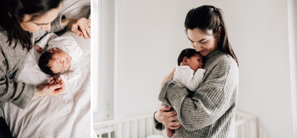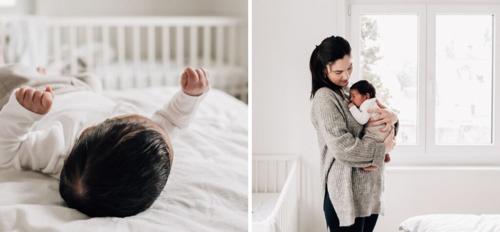 Das ist mir besonders wichtig geworden, seit wir selbst umgezogen sind. Auf unseren Baby-Fotos freue ich mich immer wieder darüber, wenn man auch noch etwas davon sieht, wie unsere erste Wohnung mit unserem Neugeborenen ausgehen hat. So kann ich unserem Sohn später zeigen, wie sein erstes Zimmer (oder in unserem Fall: halb Büro/halb Babyzimmer) aussah oder wo seine Lieblingsplätzchen waren. Deshalb empfehle ich dir, auch etwas von eurem Zuhause in dein Babyshooting miteinzubeziehen. Vielleicht hast du das Kinderzimmer besonders eingerichtet oder ihr habt euer Wohnzimmer mit persönlichen Schätzen eingerichtet. Dann kannst du diese Motive unbedingt auch festhalten.