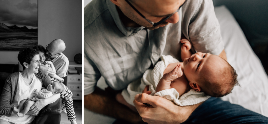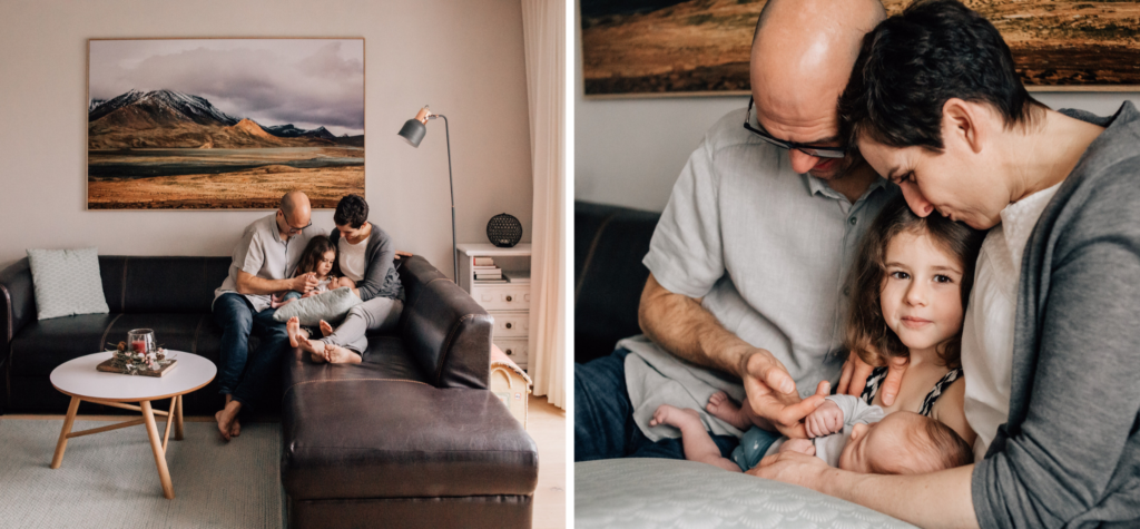 Die ersten Fotos als frisch gewachsene Familie! Diese besondere Zeit des Staunens über euer neustes Familienmitglied halte ich liebend gerne für euch fest. Meistens eignet sich euer Wohnzimmer perfekt für diese Familienfotos. Ich finde es auch immer schön, euer Zuhause auf den Bildern einzufangen. Die Einrichtung wird sich wahrscheinlich verändern, je grösser dein Baby wird. Oder ihr zieht später um und habt so kostbare Erinnerungen an das erste Zuhause von eurem Baby.
