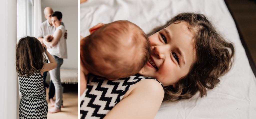 Geschwister beim Babyshooting Zuhause