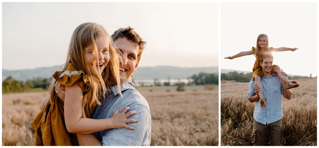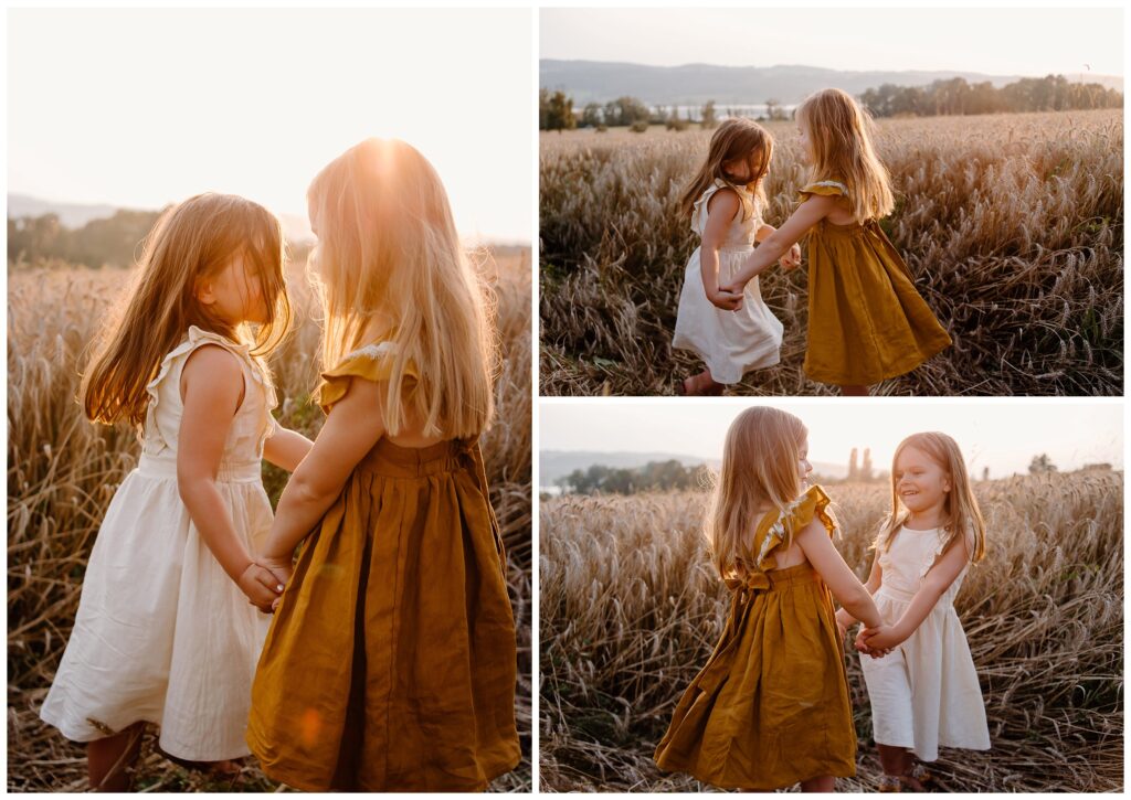 Wenn wir bei Sonnenuntergang fotografieren, sind die Farben generell eher warm und im Herbst sowieso. Wenn wir auf einem Feld oder Wiese sind, wird zudem viel Grün eure Fotos prägen. Dazu passen helle, beige Farben sehr gut als Kontrast. Auch Rostrot bringt einen sehr schönen Akzent. Auf einem beigen Feld sind dieselben Farben weniger kontrastreich und verschmelzen mit der Umgebung, was ich auch sehr schön finde.
